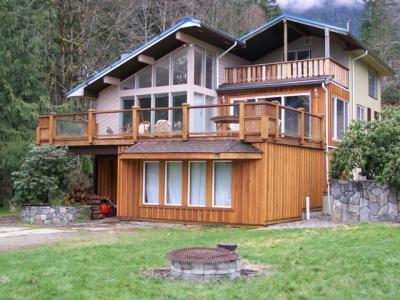 This 35 year old house has recently been extensively renovated with over and has just under 2,000 sq.ft. It is situation on half acre sloped lot (22,000 sq.ft.) with a flat driveway and features 4 bedrooms. It has two full bathrooms and two ½ bathrooms and kitchens on 2 of the three floors. This house has one large wrap around cedar deck and two smaller decks with fantastic sunset views from any level. Add to these two wood burning rock fireplaces and hardwood flooring – what more can you ask for! All this with drive up access and only two minutes from the major highway.