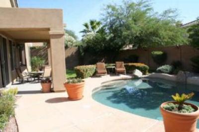 Beautiful McDowell Mountain Ranch home located in a quiet cul-de-sac. This home is approximately 2400 square feet, built in 1999 with many upgrades. Luscious backyard compliments this pebble-tec swimming pool with boulders waterfall. 3 bedrooms, 1 bonus room/bedroom, office/library with custom made french doors; recessed lighting, vaulted ceilings. Ceiling fans throughout.